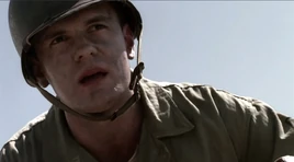 Sledge says he thought he told him to fire there. Crease gets even angrier, saying if he thinks he heard it, then to yell it, scream it if he has to, and points out that he killed his best friends for that, while two other dummies named, Tojo and Fuckface continue to hose the line. He tells them they are Marines now, not recruits. If they are given an order, they are allowed to ask. "Ya here me Sledge?" he adds. "Yes Sergeant!" says a sheepish Sledge. Crease then tells them to do it again.